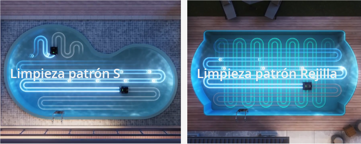 FLEXIPATH 2.0 - Recorre cada rincón de tu piscinaEl robot elabora un mapa 3D de la piscina, y la tecnología FlexiPath se adapta a él, diseñando un patrón de limpieza, analizando cada curva, pendiente o escalón. Esto garantiza la cobertura del 100% del perímetro, ofreciendo una limpieza inigualable. Ofrece 6 tipos de recorrido: