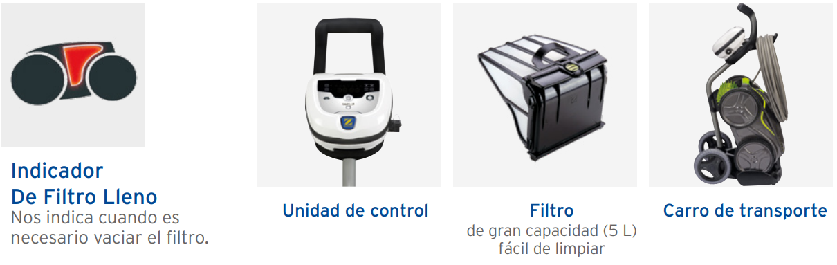 Cuenta con una boca de aspiración extra ancha que le permite recoger todos los residuos, para almacenarlos en su filtro de gran capacidad. Gracias a su indicardor sabremos cuando vaciar el filtro, el cual se extrae cómodamente a través de su tapa superior.