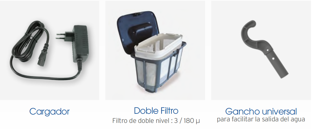 - Filtración progresiva de doble nivel: Equipado con dos filtros, garantiza la retención hasta de las partículas más pequeñas.